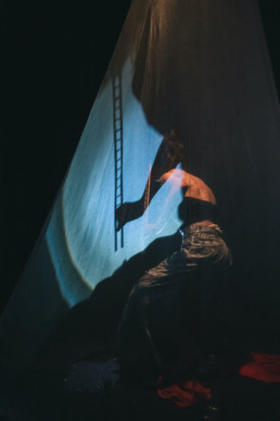 A compilation of pieces dancing between light and darkness, life and death and the contradictions in between.Other Side is a compilation of pieces that dance in the space between light and darkness, the past and the future, to access the contradictions of the Present. Other Side is a journey beyond what is visible to us, through dreamlike images, between the palpable and the mysterious, the tragic and the comic. Karavan shares 30 years of Butoh dance research and invites us to lose ourselves within ourselves, placing a ladder inside our chests in search of the other side. Creating connections between the contradictions, until perhaps arriving at the place where everything is connected. ‘As the world seams to be plunging into its own darkness, I believe Butoh has the tools to reconnect us to the basic things in life, giving us a glimpse into our essence as it teaches us to find our inner centre from which we are all connected. This performance is a poem through dance, a dance between light and shadows, dedicated to this world i so love. It is the acknowledgment that our lives are a dance of the universe, a mirror and a reflection of our inner darkness that can hopefully guid us into light.’ Y.K