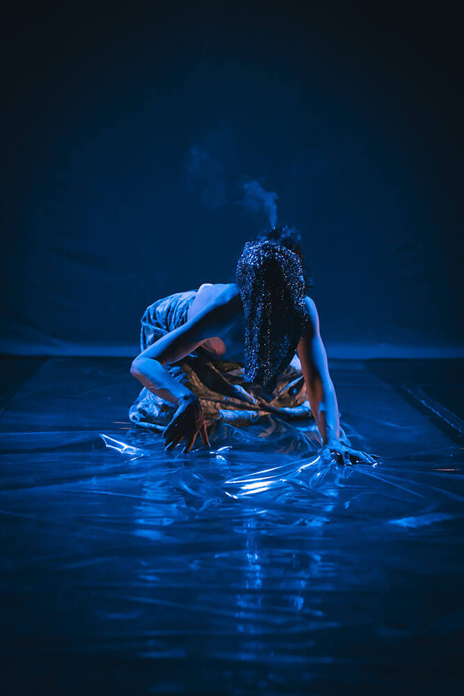 A compilation of pieces dancing between light and darkness, life and death and the contradictions in between.Other Side is a compilation of pieces that dance in the space between light and darkness, the past and the future, to access the contradictions of the Present. Other Side is a journey beyond what is visible to us, through dreamlike images, between the palpable and the mysterious, the tragic and the comic. Karavan shares 30 years of Butoh dance research and invites us to lose ourselves within ourselves, placing a ladder inside our chests in search of the other side. Creating connections between the contradictions, until perhaps arriving at the place where everything is connected. ‘As the world seams to be plunging into its own darkness, I believe Butoh has the tools to reconnect us to the basic things in life, giving us a glimpse into our essence as it teaches us to find our inner centre from which we are all connected. This performance is a poem through dance, a dance between light and shadows, dedicated to this world i so love. It is the acknowledgment that our lives are a dance of the universe, a mirror and a reflection of our inner darkness that can hopefully guid us into light.’ Y.K